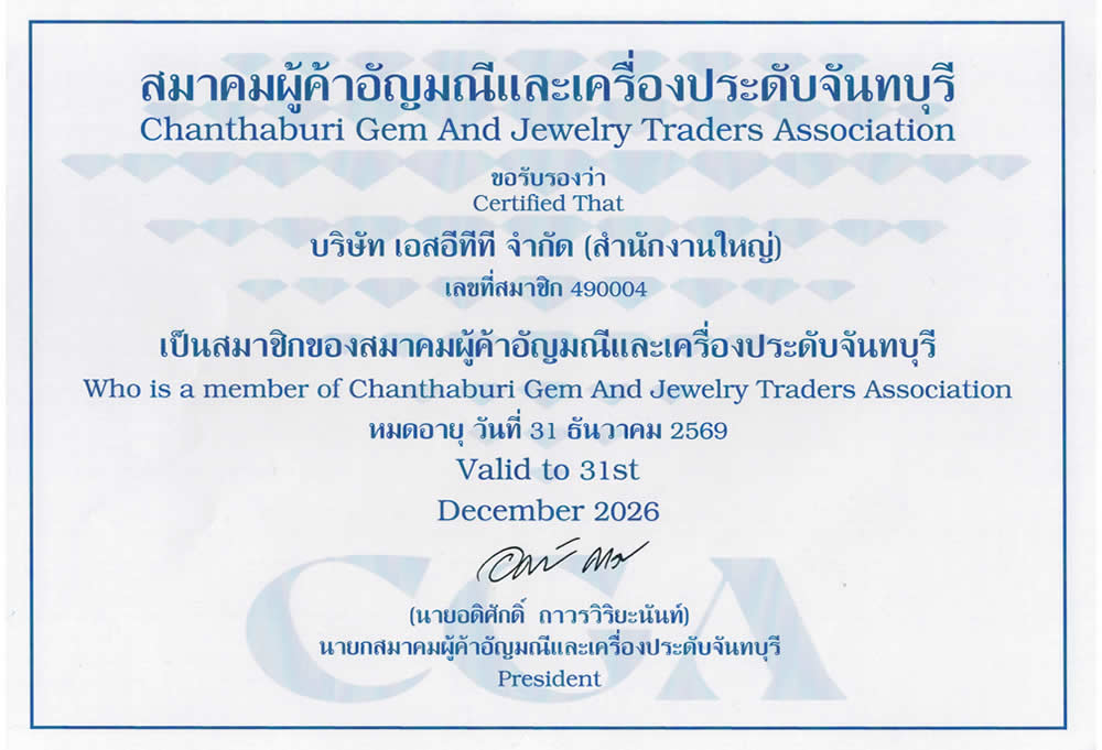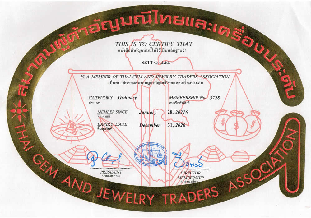 Nuestra empresa (SETT Company Ltd.), GemSelect, está ubicada en el corazón de Chanthaburi, la ciudad de las piedras preciosas. Como es natural, somos miembros de la CGA y representamos al comercio de piedras preciosas naturales de Chanthaburi.